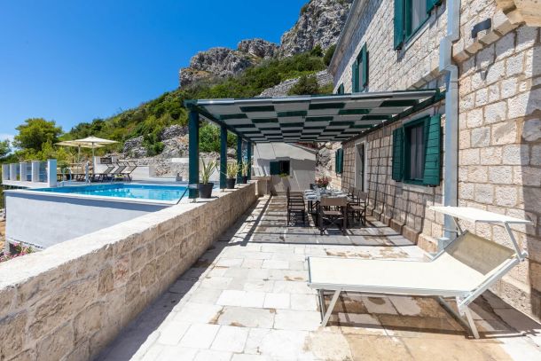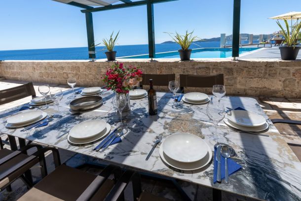S druge strane bazena se nalazi veliki stol idealan za zajednička druženja uz čašu omiljenog vina i večere najfinijih jela s roštilja.