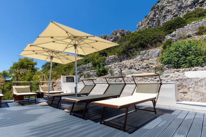 Na sredini posjeda se nalazi vanjski bazen uz kojeg su smještene ležaljke za sunčanje. Ustanite se ujutro i osvježite se u predivnom moru na svega nekoliko metara ispred kuće ili skočite u bazen za svoju dozu osvježenja.